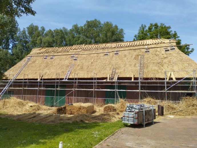 Reetdachsanierung des Treppenspeichers auf dem Hof Wulfsberg im Naturschutzgebiet Lüneburger Heide